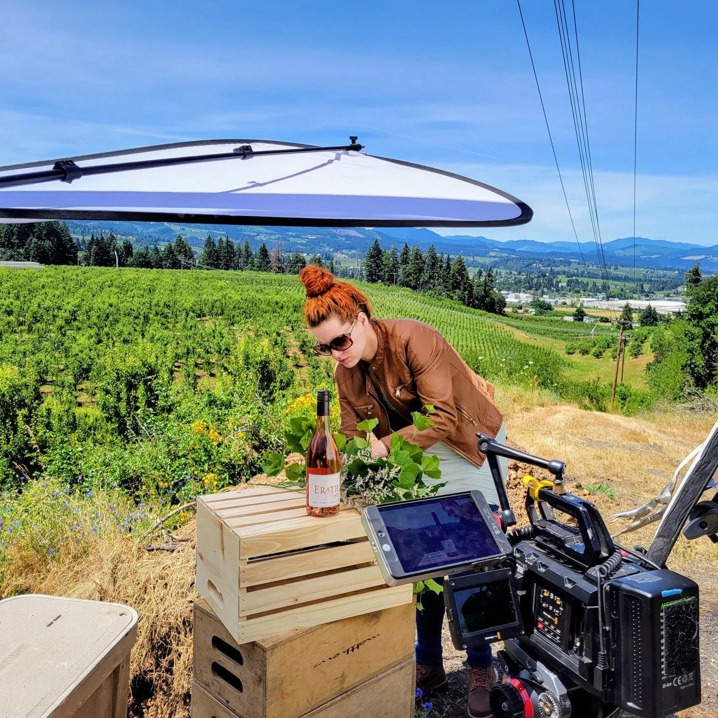 View fullsize Whitney setting up the shot and getting everything all beautiful for our Erath Wine product shoot.